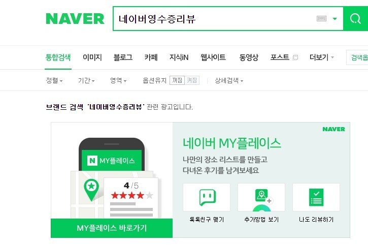 - 네이버를 열어 검색창에 '네이버 영수증 리뷰' 입력.