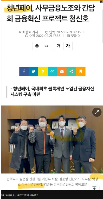 청년페이는 사회초년 청년들이 자산을 형성하는 과정에서 국회와 정부의 제도적 지원을 통해 블록체인 시장의 잠재적 가치를 발굴하고, 전 세계에서 통용되는 모바일 화폐의 시대를 열겠다는 비전을 가지고 있습니다. 또한, 한국청년위원회는 금융정책의 혁신을 위해 국회 블록체인 컨퍼런스를 맡아 블록체인 기술 활용의 다양성과 암호화폐 정책에 대해 토론하고 제안하는 장을 마련하는 등 시장의 신뢰성과 안정성 확보를 위한 제도권 장치를 준비 중이라고 합니다.