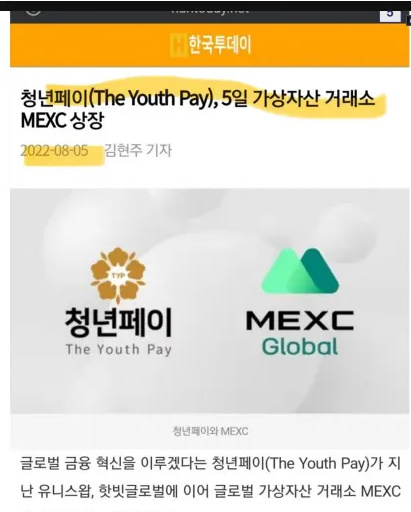 청년페이(The Youth Pay, TYP)는 블록체인 기반의 핀테크 플랫폼으로, 간편결제 시스템, 청년포인트 리워드 서비스, 청년들의 소통창구, 청년 창업 지원 및 청년서비스 등을 제공하며 다양한 Dapp의 De-fi 생태계를 조성하는 것을 목표로 하고 있습니다. 청년페이는 국내 소상공인과의 네트워크 구축을 통해 말레이시아, 인도네시아, 중국 등 전 세계에서 사용될 수 있는 글로벌 결제 시스템을 확장해 나가고 있다고 합니다.