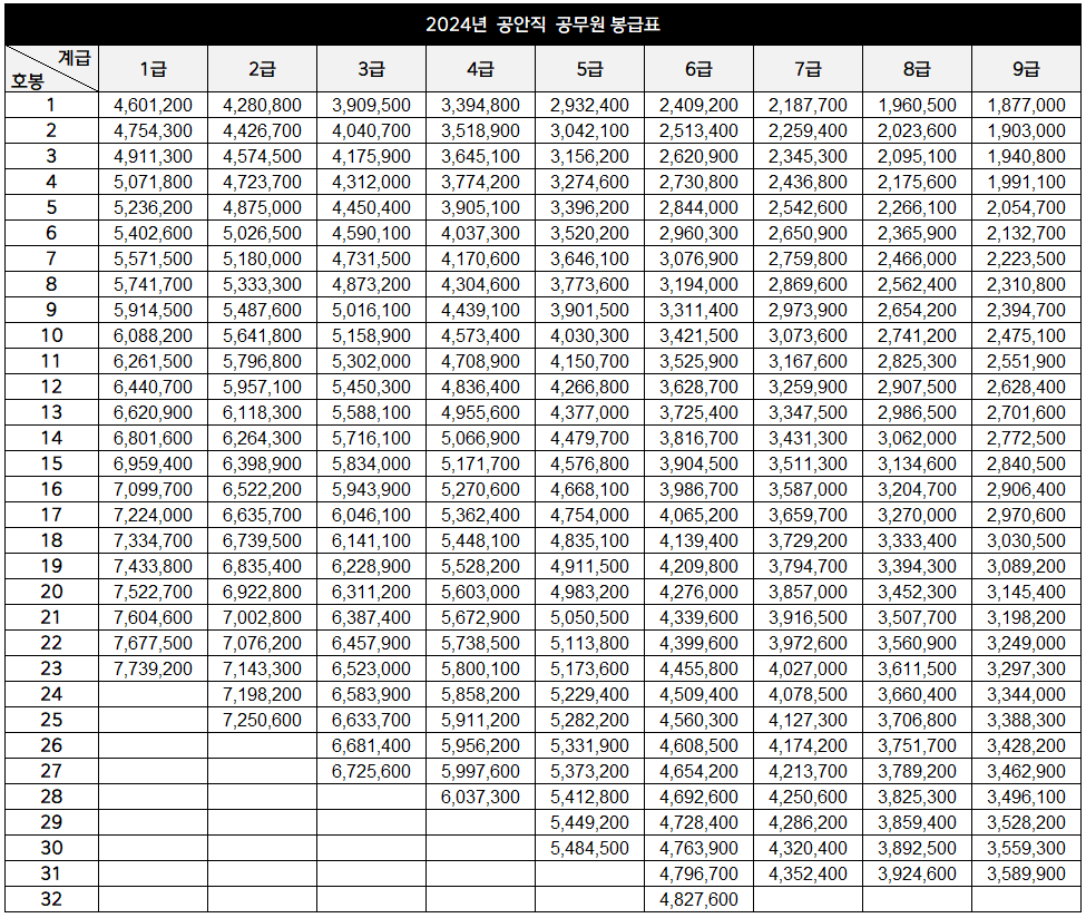 2024년 공안직 공무원 봉급표 소개