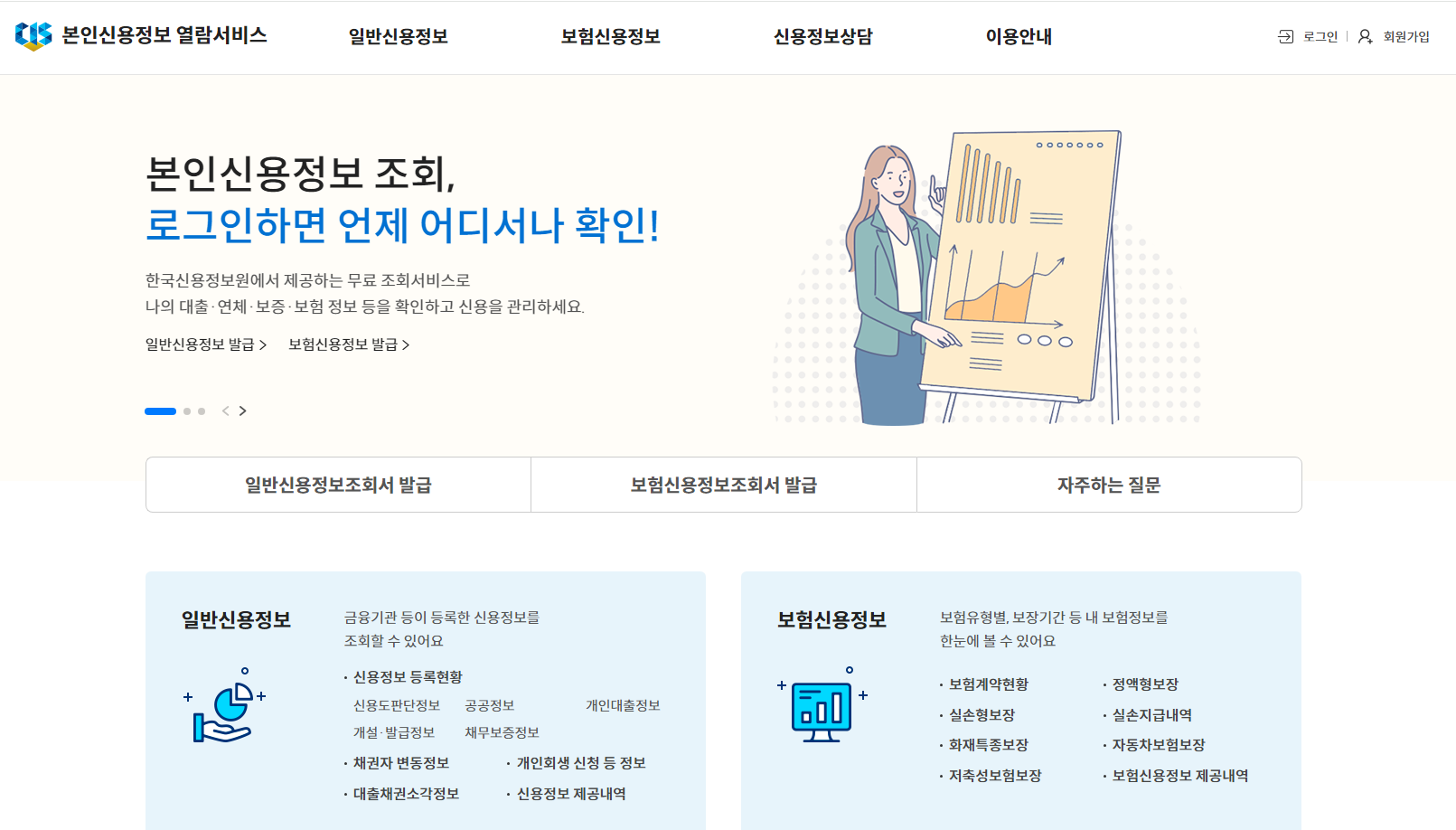 - 한국 신용정보원의 본인 신용정보 열람 서비스 활용