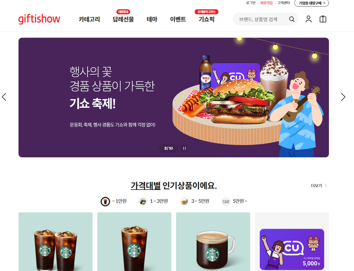 - 기프티쇼 비즈: 기업용 계정을 이용할 경우 할인 혜택이 적용됩니다.