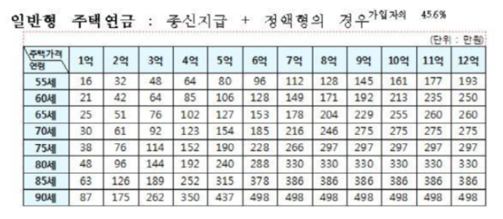 올 2월부터 대상 주택 시세를 9억원에서 12억원으로 상향한 것도 가입 니즈가 높아진 요인입니다. 월 지급금 산정 때 주택가격 상한이 9억원으로 고정돼 60세 기준 월 지급금은 192만원이 최대였는데, 지난달부터 기준이 되는 주택가격 상한이 시가 12억원으로 올랐습니다. 월 지급금이 250만원(기존 가입자 소급 적용은 안 됨)으로 58만원 정도 늘어납니다. 고가주택 보유자는 가입조건이 더 유리해진 것입니다. 이는 12억원을 연이율 2%인 예금통장(매달 166만원)에 넣을 때보다 더 높은 수익률입니다.