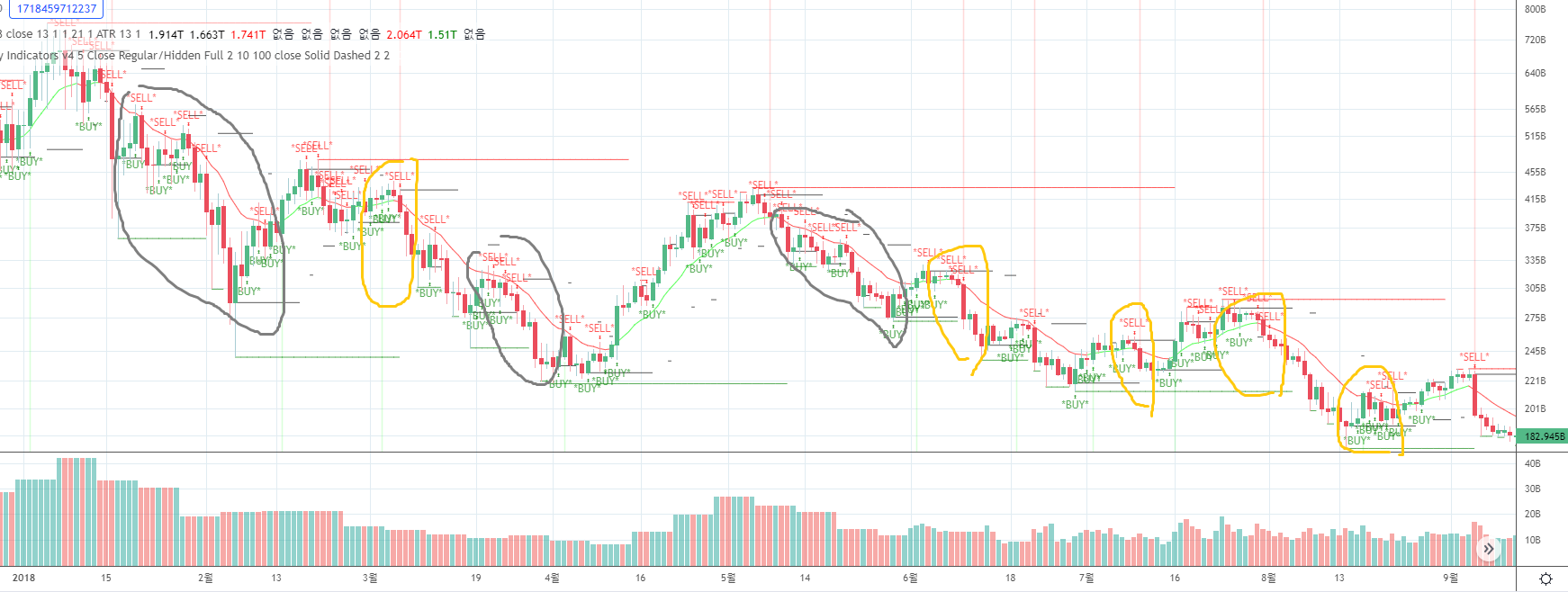 이를 고려하여 진입시 분할매수비중, 스탑값 및 줍줍 타이밍 정할것
