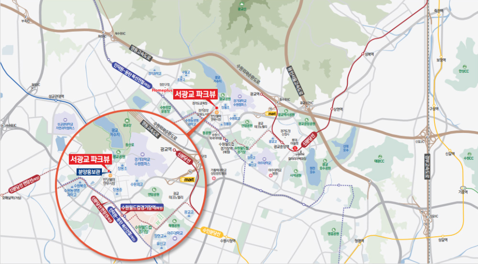 아주대학교 병원 등 의료시설 인접 및 경기도교육청, 광교테크노밸리 등 인접