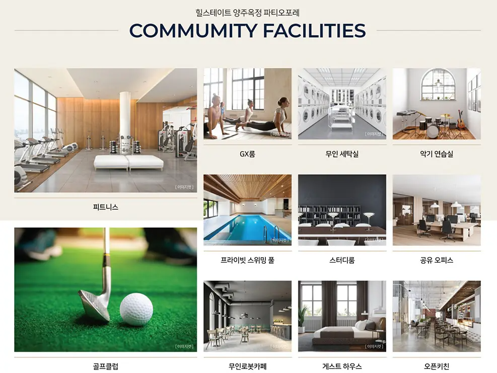 대단지 아파트 수준의 고급격 커뮤니티과 주거 커니어지