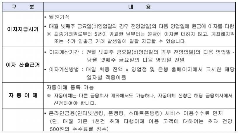 온라인전용 상품으로 인터넷뱅킹, 폰뱅킹, 스마트폰 뱅킹 및 당행 자동화기기 이용수수료 면제