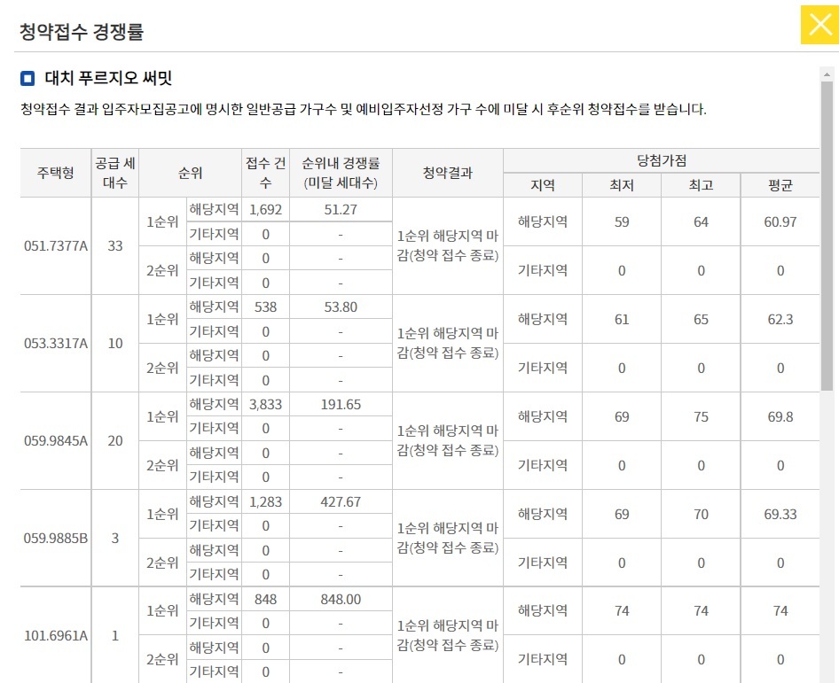 최근 근처 분양결과