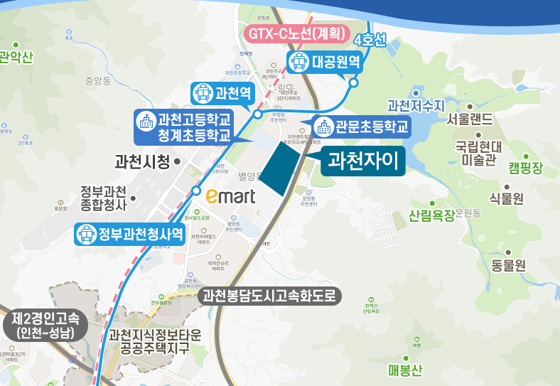 GTX C노선이 예정되어 있는 4호선 과천청사역까지 700m