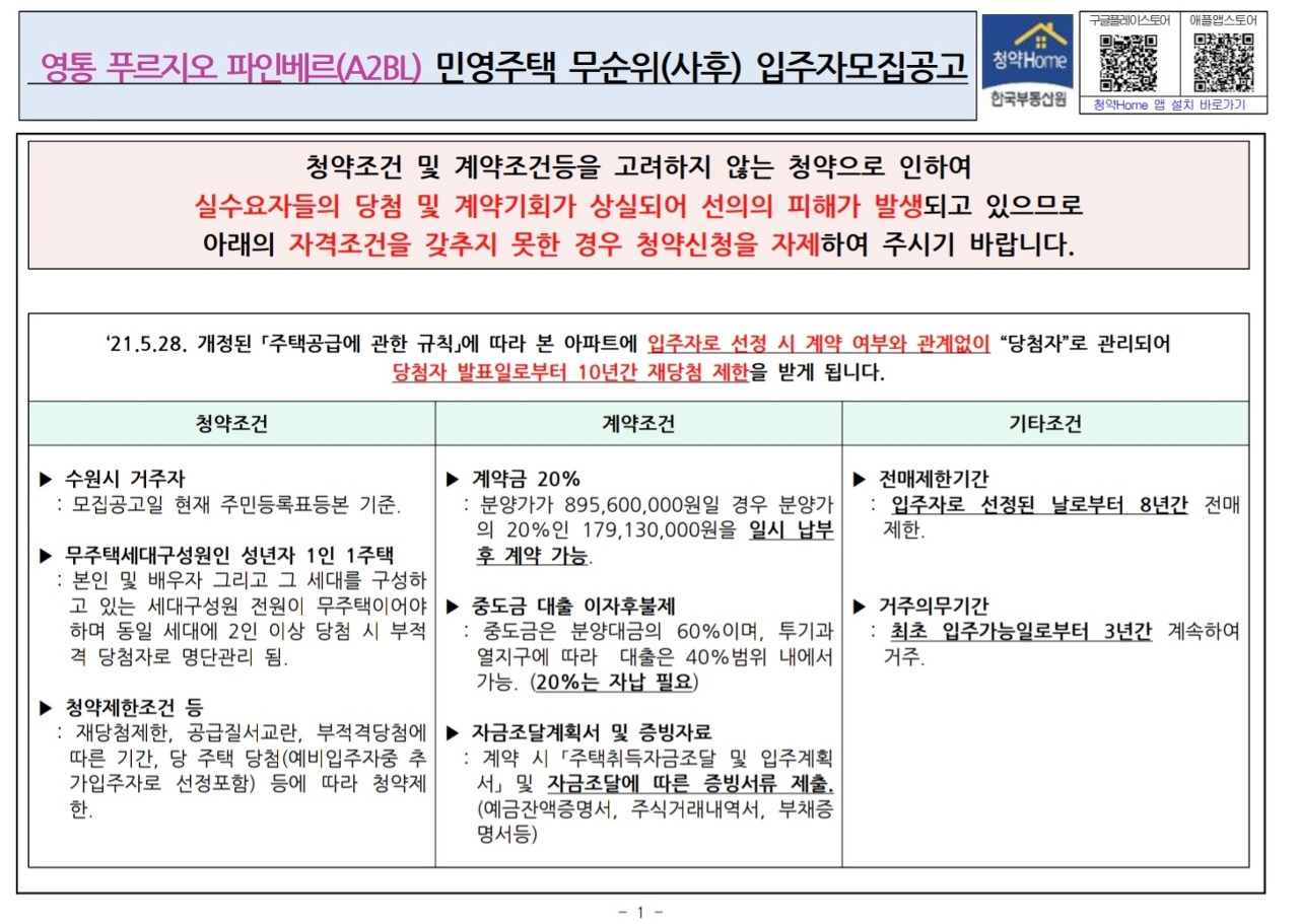 파인베르 무순위 청약 공급 내역