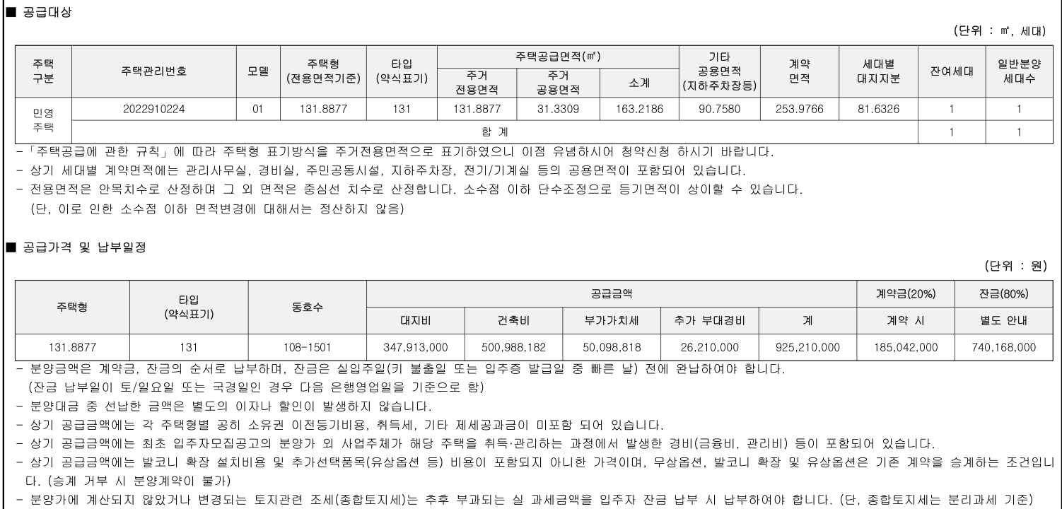 131타입 9억 2천여 만원