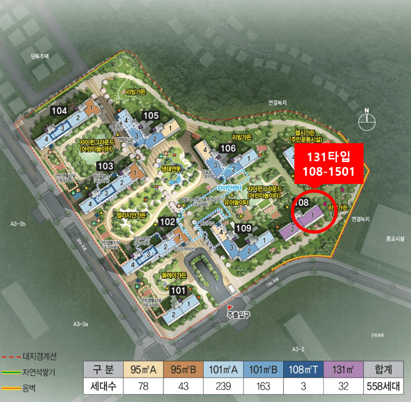 아파트 지하 4층, 지상 23층 9개동 총 558세대 중 계약해제 1세대