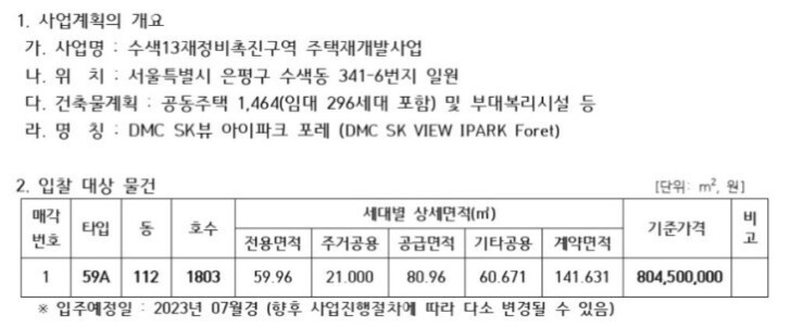 2022.07.12 - [부동산] - 수색 13구역 DMC SK VIEW 아이파크포레 잔여세대 매각 입찰 정보