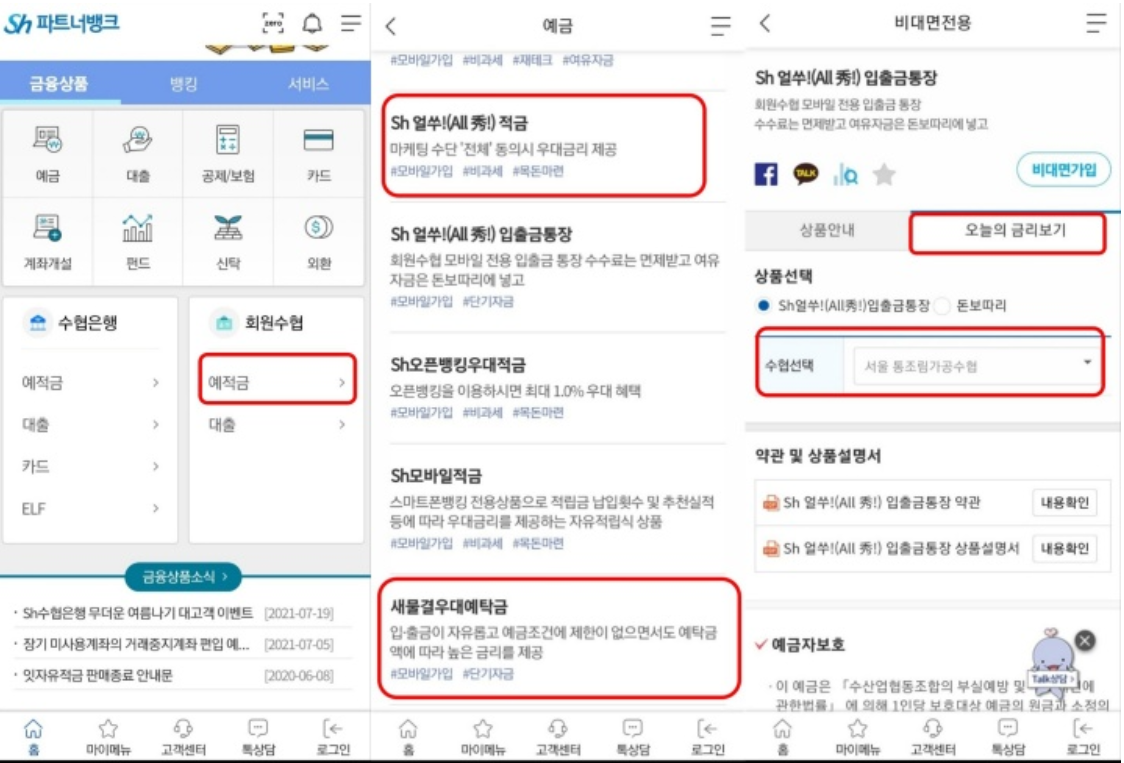 이 상품은 수협파트너뱅크앱을 이용한 비대면 방식으로 가입이 가능합니다.