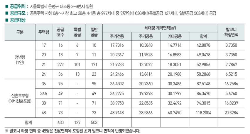 지하 6층~지상 28층, 977가구(전용면적 17~48㎡). 이 중 민간공급 물량 630가구