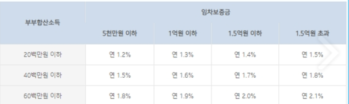 - 부부합산 연소득 4천만 원 이하로서, 기초생활보장제도 대상자/차상위계층 연 1.0% p