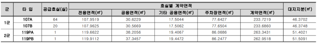 - 107B타입(20세대 중 20세대) : 8.90억(1.51억↘)