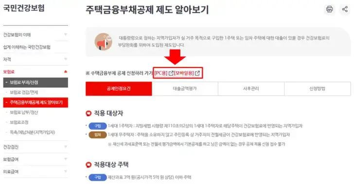 2) 메인 공지사항에 주택금융부채 건강보험료 공제 한눈에 보기 클릭 하고 안내에 따르면 됩니다.