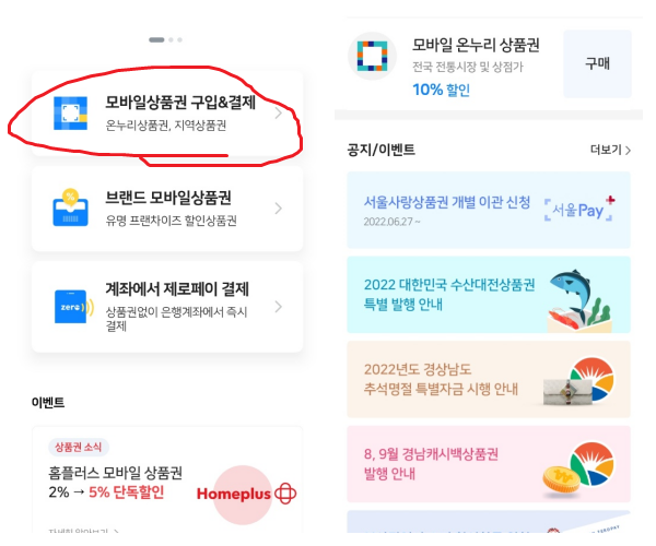 : 지류/전자 상품권은 5%, 온누리모바일상품권은 10% 할인 구매가 가능합니다.