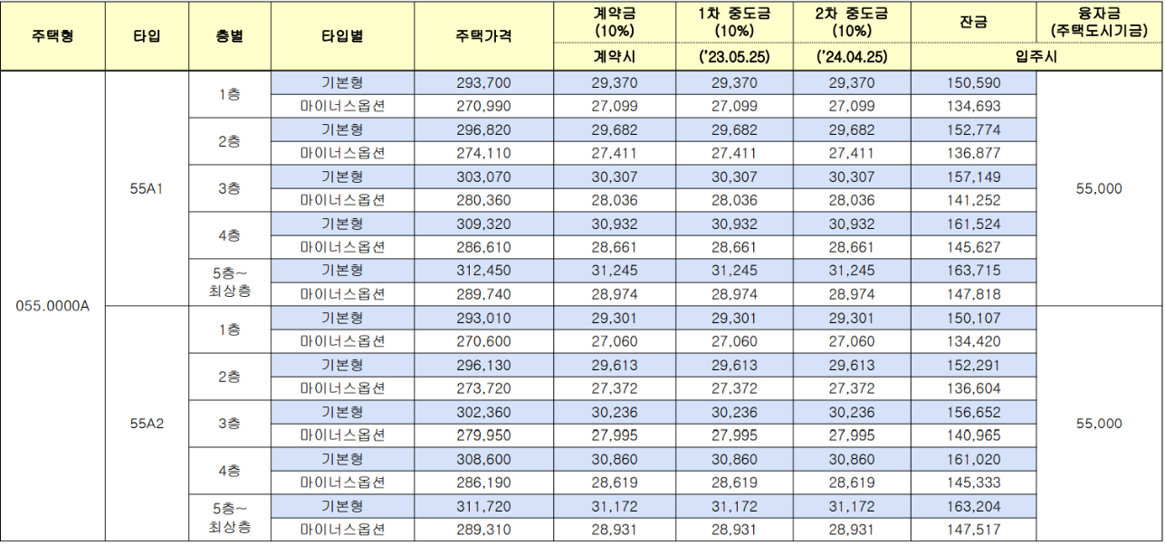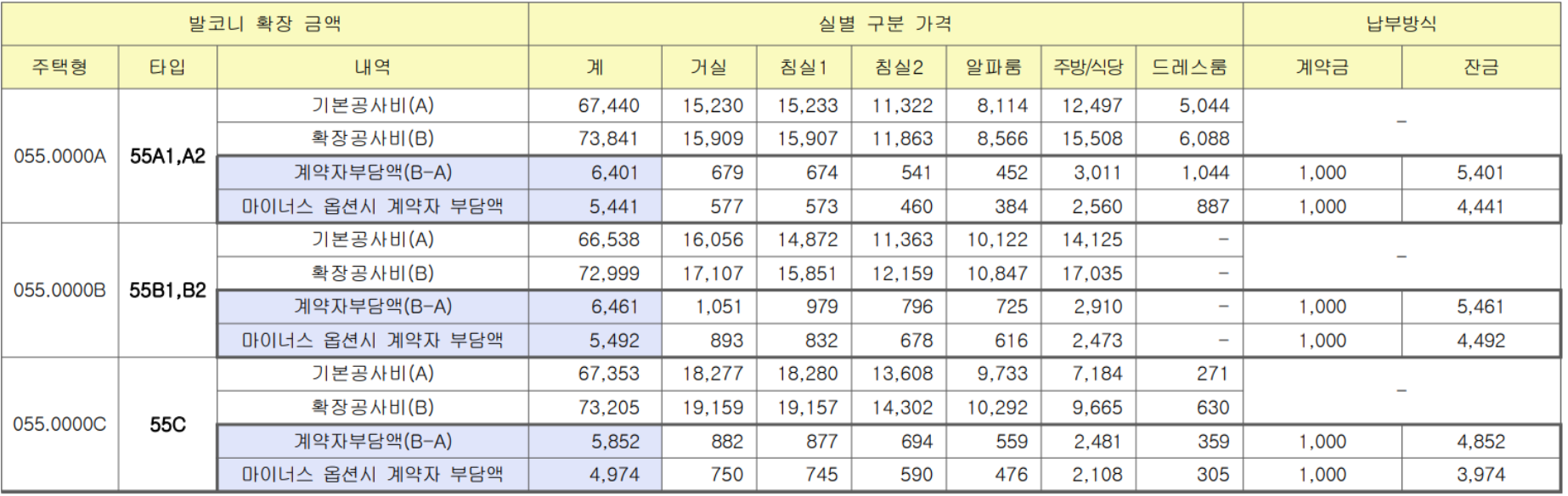 - 55B㎡(59세대) : 3.11억