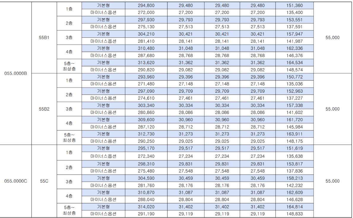 - 55C㎡(76세대) : 3.11억