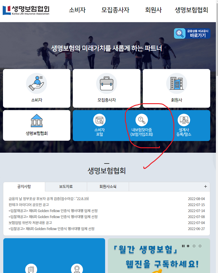 검색 포털에서 생명보험협회를 검색하면 해당 홈페이지로 바로 가실수 있습니다.