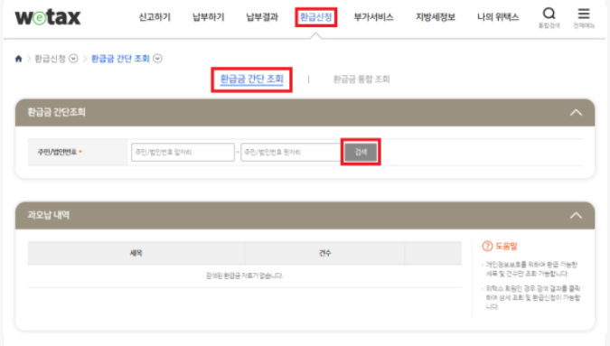 3. 주민등록번호 입력하여 지방세 환급금 조회