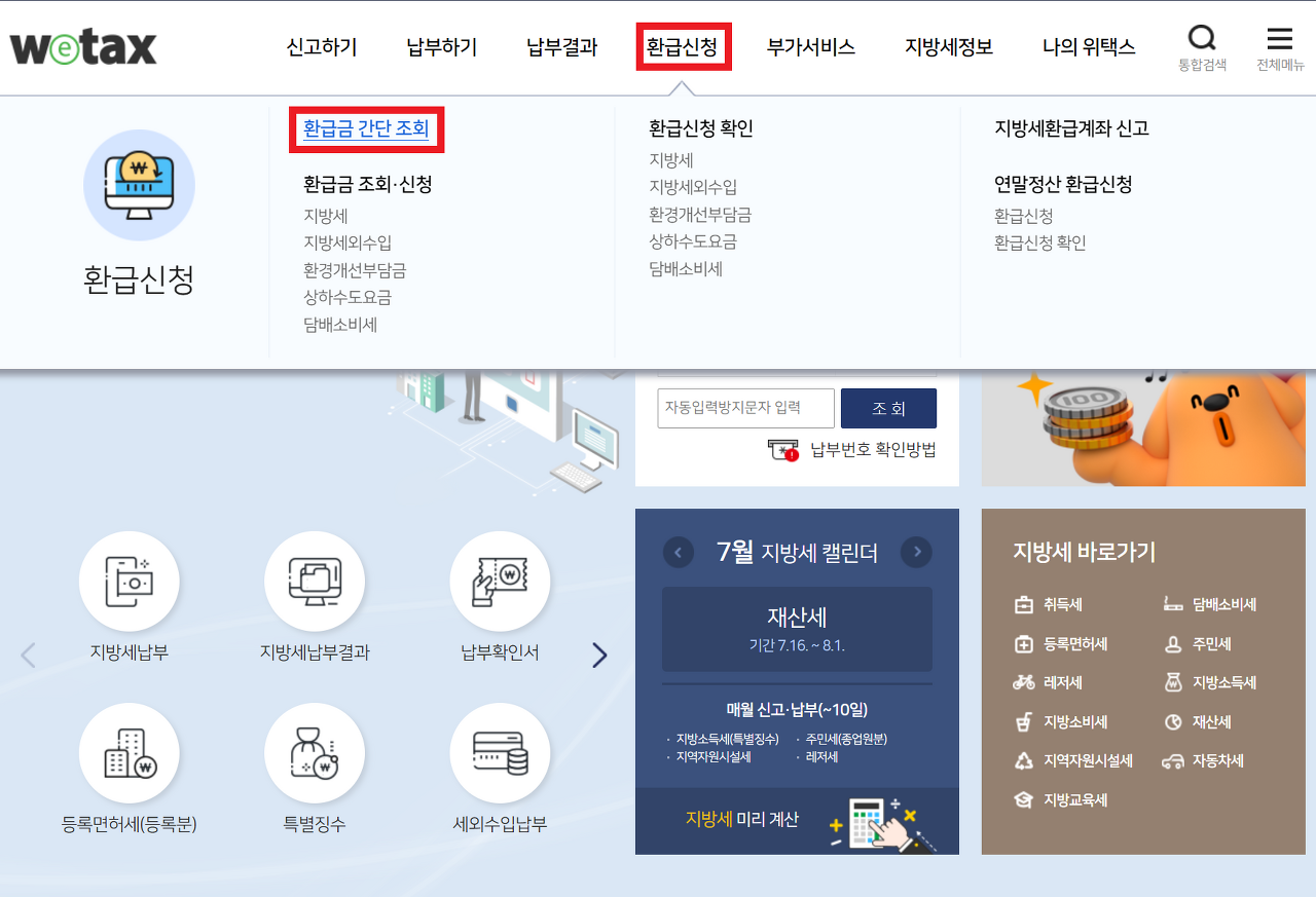지방세환급금 조회방법