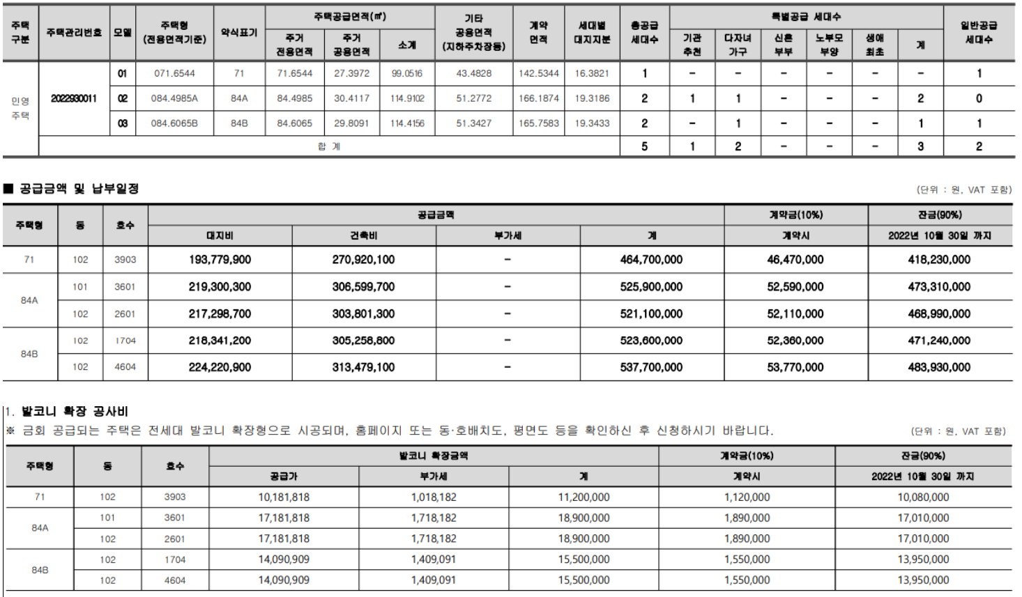 - 71타입(1세대,102-3903) : 4.64억