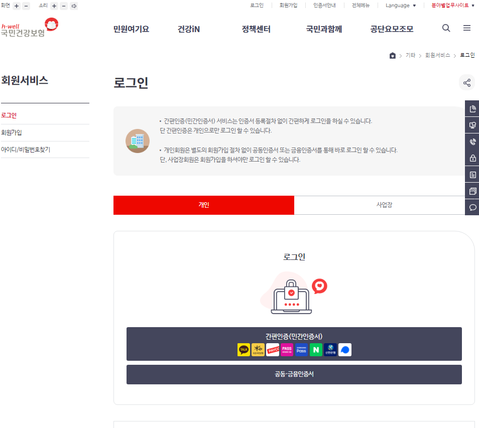 개인적으로 The 건강보험 앱이 가장 편했네요. 앱을 추천합니다.