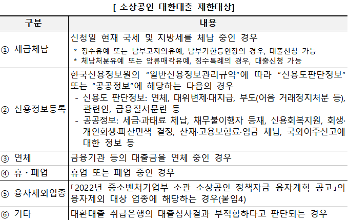 • 사업자등록증을 보유한 개인사업자 또는 법인사업자 대상 이며 사업자가 대출 시 용도는 설비, 운전자금에만 해당되고 금융권에서 받았어야 함