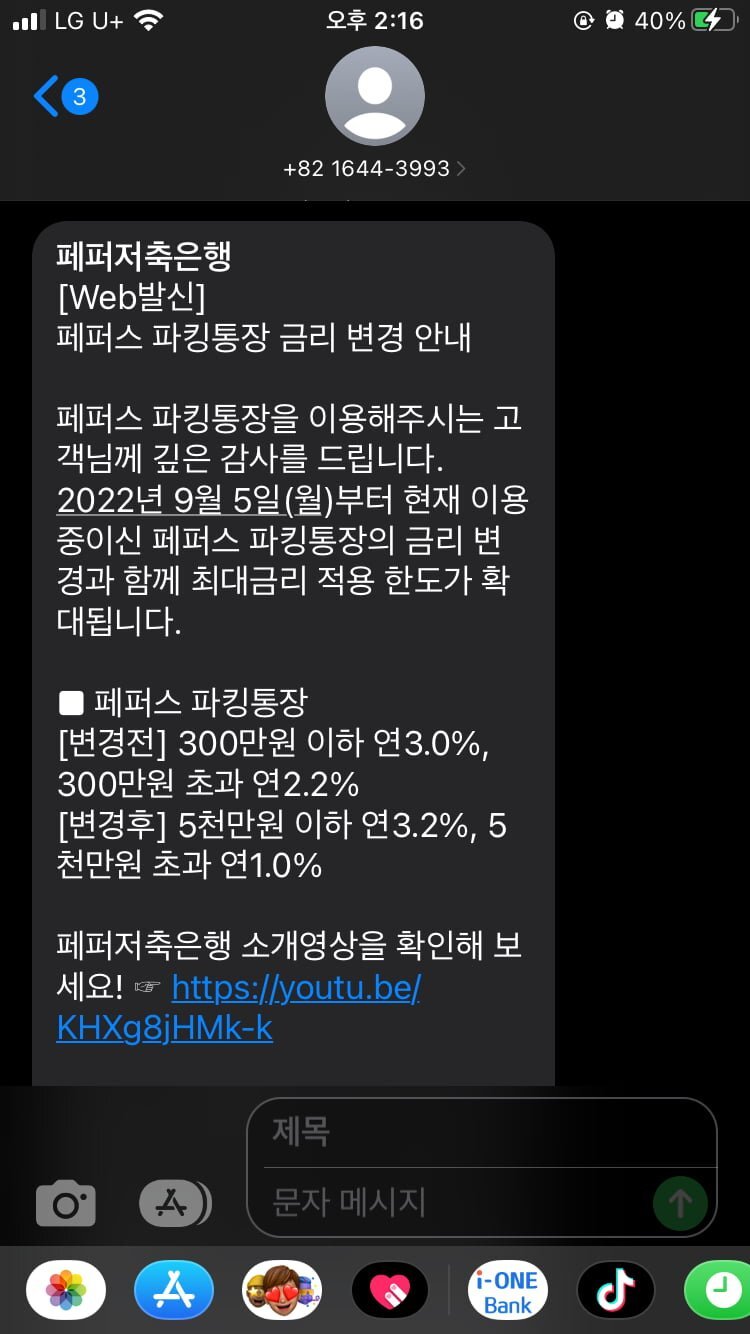 페퍼스 파킹통장 금리변경 안내문