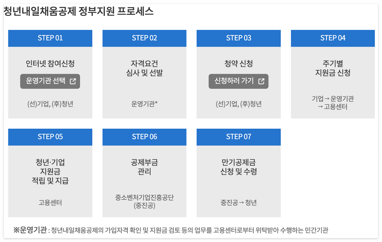 고용노동부 청년내일채움공제 홈페이지에서 참여 신청 할 수 있습니다. (단, 기업이 청년내일채움공제를 등록해야 청년이 신청가능)