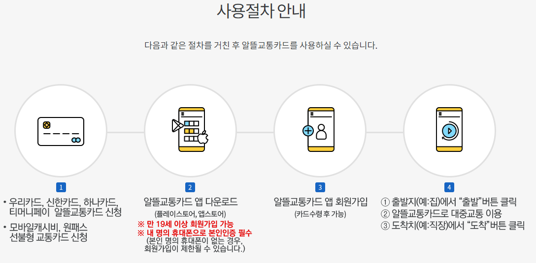 알뜰교통카드 신청 및 사용절차