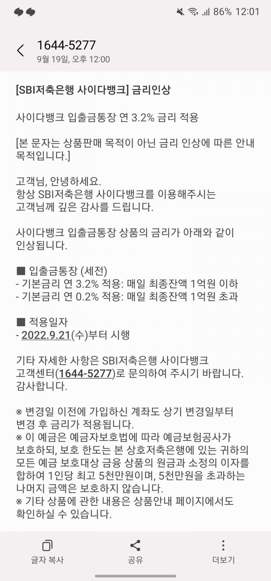 SBI저축은행 사이다뱅크 금리변경 안내문