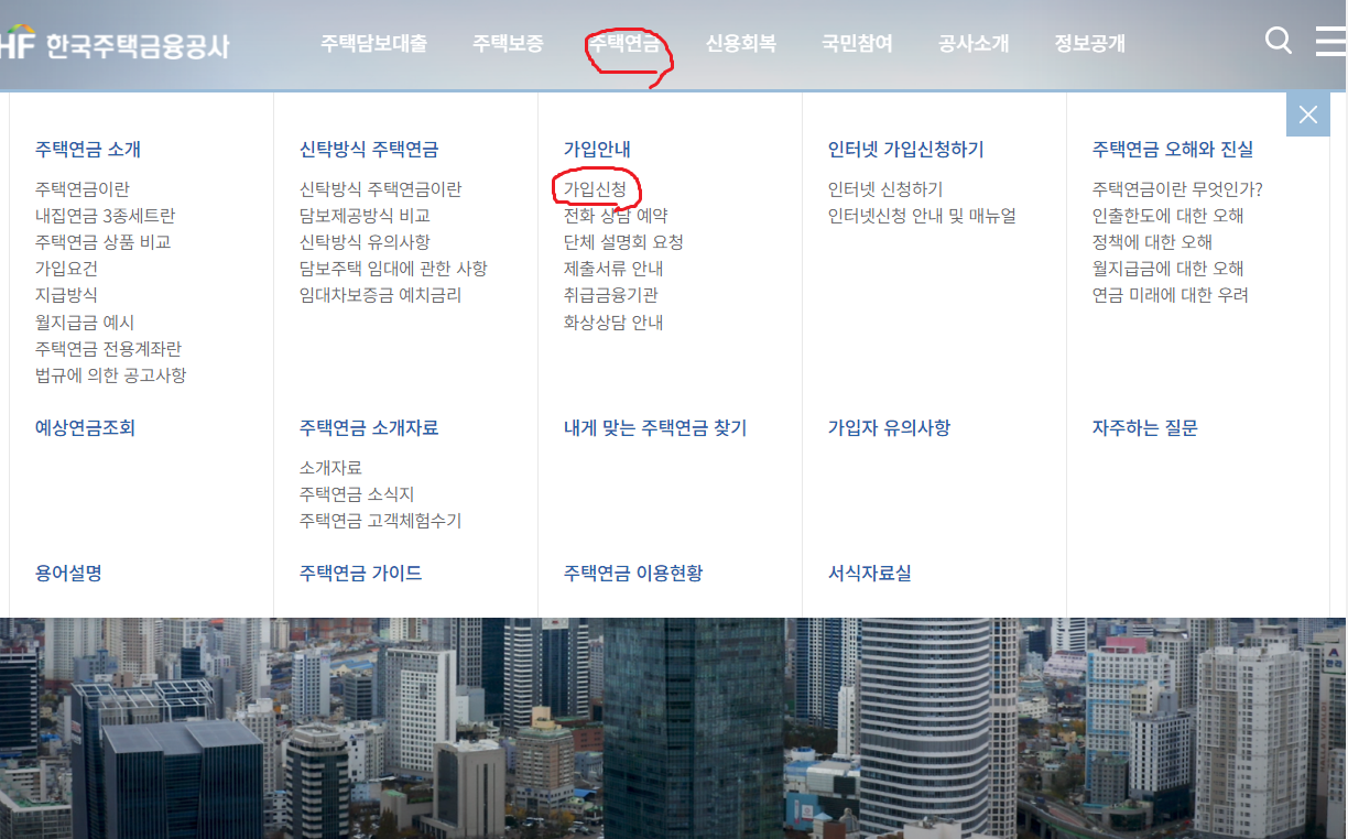 : 주택금융공사 홈페이지 접속 → 주택연금 클릭 → 가입신청 클릭 → 신청서 작성