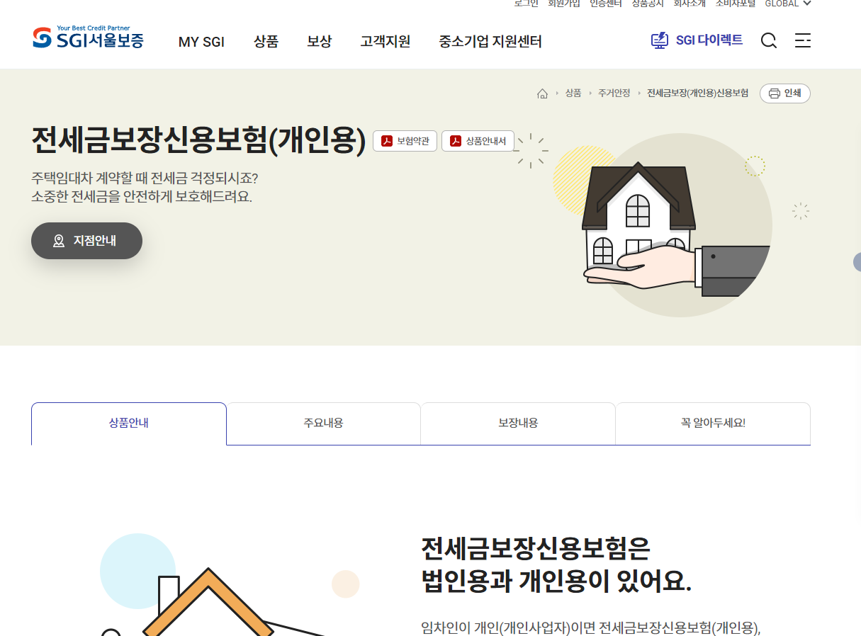 : SGI서울보증 홈페이지에 접속하여 전세금보장신용보험(개인용) 상품 안내를 읽어보고 신청하면 됩니다.