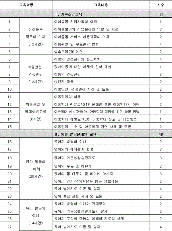 - 각 지자체 별로 아이 돌보미 양성교육을 지원하고 있으므로 아이돌보미 지원자는 자신이 근무하고자 하는 지역의 모집공고를 확인하고 교육을 받을 수 있습니다.