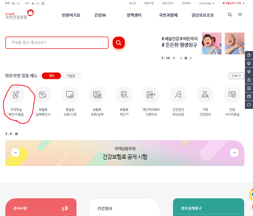 국민건강보험공단 홈페이지