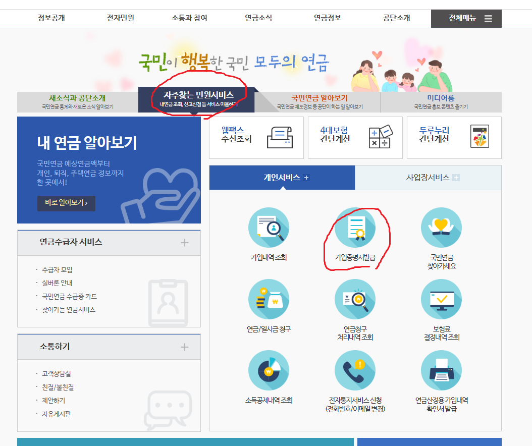☞ 국민연금공단 가입증명서 발급 바로가기