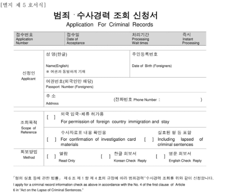 범죄경력증명서 (신원조사증명서, 범죄경력회보서) 발급방법