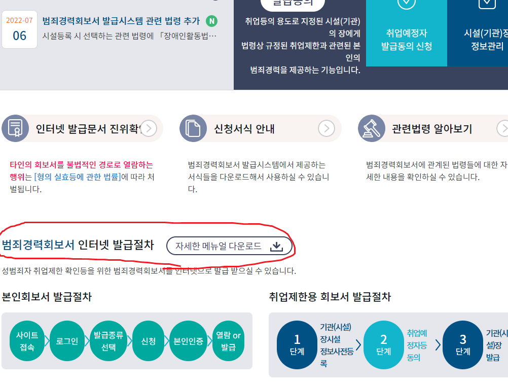 ☞ 범죄경력회보서 발급시스템 홈페이지 바로가기