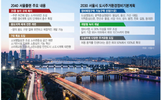 2040 서울플랜은 시가 추진할 각종 계획의 지침이 되는 최상위 공간 계획이자 법정 계획이다. 서울시는 2014년 도입된 주거용 건축물 관련 35층 이하 높이 기준을 삭제하고 지역 여건에 따라 다채로운 스카이라인을 유도한다.