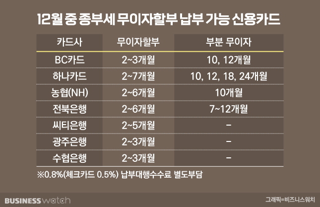 - 국세도 신용카드납부가 가능합니다. 카드사별로 진행하는 무이자할부 행사를 이용하면 세금납부에 따른 자금부담을 조금이나마 덜 수 있다.