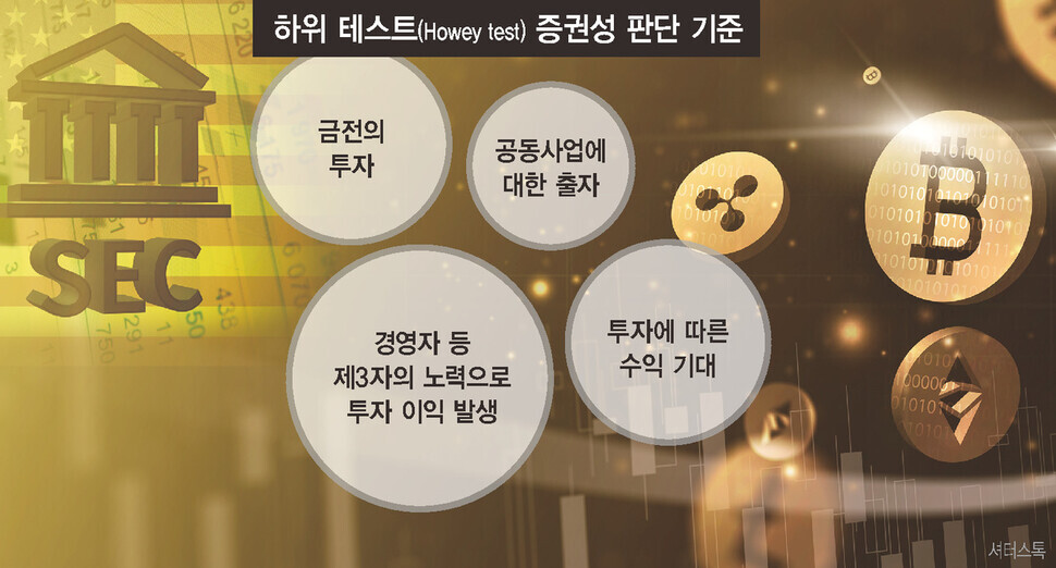 가상자산은 크게 투자성을 지닌 증권형과 결제수단처럼 사용되는 비증권형 코인으로 나뉜다. 미국 금융당국이 증권성을 판단할 때는 연방대법원 판례인 ‘하우이 테스트’가 기준이 된다.