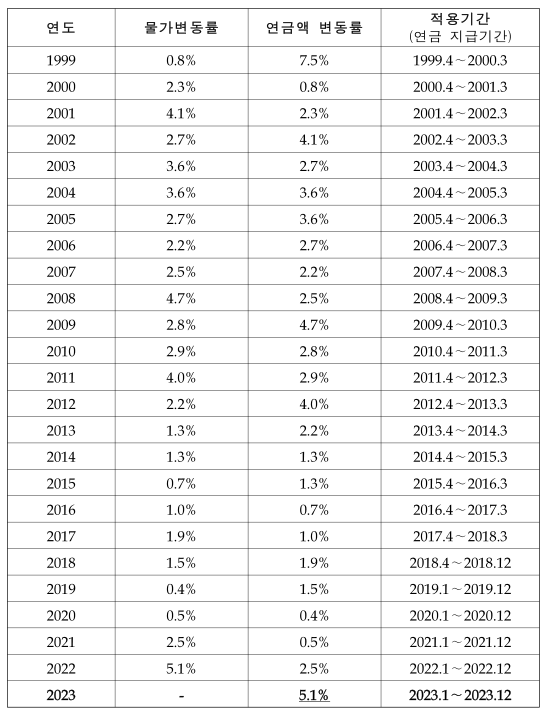- 2022 년 물가상승률 (5.1%) 을 반영해 연금액을 인상