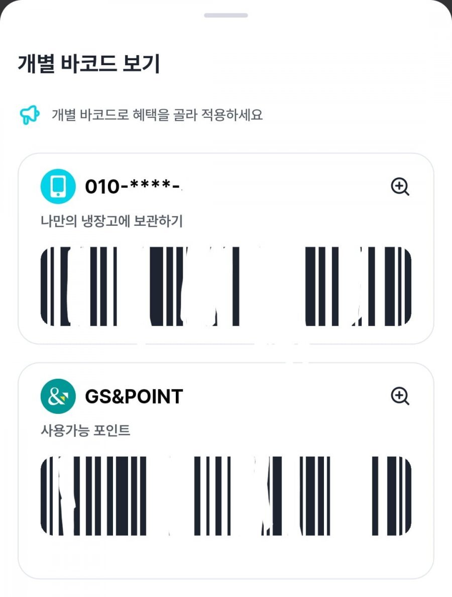 요약: 냉장고 바코드 -> 통신사바코드 -> 50%큐알 -> gspay(신한)