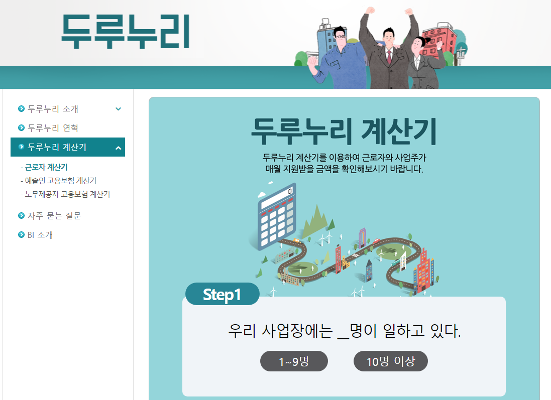두루누리 공식 홈페이지에 있는 계산기에 필요정보를 입력하면 자신이 지원대상이 되는지 간단히 확인할 수 있습니다.