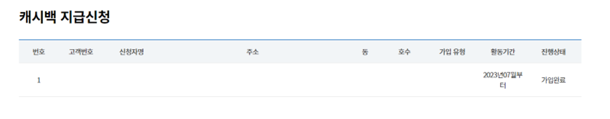 신청 후 적용은 신청일이 속하는 월부터 적용이 된다. 단, 2023년 6월 7일부터 8월 31일 내에 신청한 고객의 캐시백은 23년 7월분 사용량부터 적용됩니다.