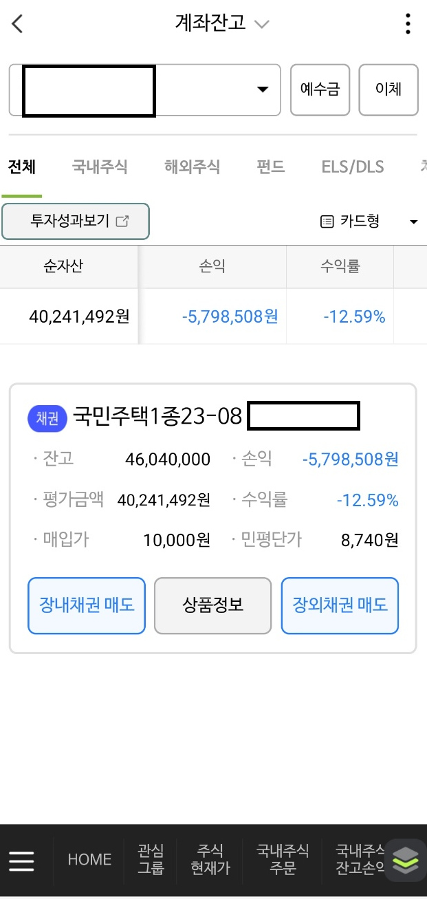 - 다음날 증권사 앱에서 증권계좌에 매입한 채권 확인